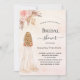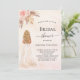 A rose gold, blush pink gradient background. A bride, pink roses, pampas grass. Personalise and add a name and party details.