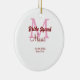 Bride squad add name monogram bridesmaid pink date ceramic ornament