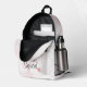 Personalised bridesmaid backpack bags for the fun and elegant wedding featuring pink and white background with a large pink heart on the front and a pink heart on the pocket, and personalised with the name of each bridesmaid. Great gift idea for the bride squad in your wedding.