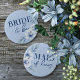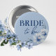 Bride to Be Blue Bridal Shower Pin on Button. Featuring beautiful elegant dusty slate blue watercolor flowers on a light slate blue background. Check out the other matching buttons in the collection for other important guests such as the maid of honour, mother of the groom, bridesmaid's and more!