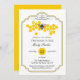 This elegant Bridal Shower Invitation is ideal to celebrate a stylish event with a “Bride to Bee” theme. It features the silhouette of a bee and a graphic décor using pieces of a bee hive with two small hearts. The ornate frame adds a classy and vintage touch. The white, yellow and black colour palette matches the bee theme.