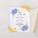 These bridal shower invitations feature a watercolor floral design with purple hydrangea flowers, leaves, honey bees, honeycomb and a faux gold geometric frame. Matching products also available.