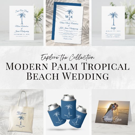 Modern Blue Palm Tree Tropical Beach WeddingDesigned by Laura C.