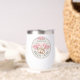 Celebrate your special day with this elegant and personalised wine tumbler. The soft pink and beige floral design adds a touch of femininity, making it the perfect accessory for bridal showers, bachelorette parties, and wedding receptions. Text: "Bride Tribe"