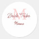 Bride tribe monogram red bridal shower simple mini classic round sticker
