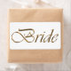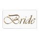 Bride white and gold script calligraphy elegant chic bridal shower, wedding identification label. Can be used for anything related to the wedding party to identify objects, clothing, items related to the bride.