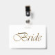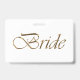 Bride white and gold script calligraphy elegant chic bridal shower, wedding identification badge. Can be used for anything related to the wedding party to identify objects, clothing, items related to the bride.