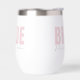 Sip in style with this elegant Bride stemless wine tumbler, personalised with the future bride's name in a chic handwritten script. Featuring bold blush pink “BRIDE” text, this thermal wine cup keeps drinks cold (or hot!) and is perfect for bachelorette parties, engagement celebrations, or wedding day prep. A thoughtful and trendy gift for the bride-to-be that’s both practical and Instagram-ready.