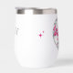 Personalise this custom bride & guest names trendy 70's retro Bride's Last Disco theme bachelorette party / weekend quality thermal wine / coffee tumbler party favour gift featuring a silver Disco ball and groovy hot pink script fonts and retro starburst design accents on front, and custom bridesmaid or party guest name on the back. Easily enter your wording details and make it your own! Custom design requests and questions are always welcome - click the message button, or email directly at: contact@figandlilyco.com ♥