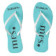 A cute addition to your destination beach or poolside wedding! Dance the night away in these comfortable bridle flip flops. Sample background colour is a Tiffany, aqua blue-click "customise it" to change colour. The word "Mrs.", in black with the brides name personalised. To see matching groom's flip flops- Please visit my store "The Hungarican Princess" at www.zazzle.com/hungaricanprincess*. Look in my "Flip Flops" department category. Congratulations!