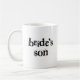 Cool black text design Bride's Son T-shirts, mugs, mousepads, buttons, tote bags, and other son of the bride gear that can be customised with text or a name. We have matching black text T-shirts and other items for all the members of the wedding party and family members!