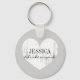 Personalised black and white heart button keychains for bridesmaid. Elegant stylish typography design. Make one for brides crew; brides maids, maid of honour, flower girl, mother of the bride etc. Customisable background colour to match your wedding party or bridal shower. Custom key chains with weather love symbol and trendy typography template.