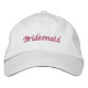 Custom Embroidered Alternative Apparel Basic Adjustable Baseball Cap Hat in White with Bridesmaid in Pink text typography lettering and digital graphic design by TheFabricSeal print on demand shop at Zazzle.com #ZazzleMade https://www.zazzle.com/store/thefabricseal TheFabricSeal©️Original.