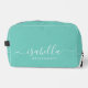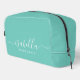 This Bridesmaid dopp kit accessory bag features a handwritten white script typography with swashes on a midnight or aqua background. Present your bridesmaids with a toiletry bag for their makeup and small items traditionally presented at the rehearsal dinner, for use in the early morning before the wedding.