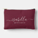 This Bridesmaid accessory bag features a handwritten white script typography with swashes on a burgundy background. Present your bridesmaids with a toiletry bag for their makeup and small items traditionally presented at the rehearsal dinner, for use in the early morning before the wedding.