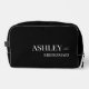 Black and white simple elegant minimalist bridesmaid gifts personalised name bag bridal party favours