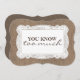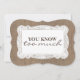 "You Know Too Much." "Will you be my Maid of honour?" Funny rustic country burlap lace proposal cards