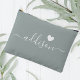 Bridesmaid Modern Script Sage Green Heart Accessory Pouch