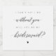 This elegant black and white sparkling wine label features minimalist calligraphy, asking, "Will you be my bridesmaid?" Its modern and classic design creates a simple yet sophisticated touch, perfect for a timeless bridesmaid proposal.
