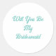 Bridesmaid Proposal Teal Blue Elegant Wedding Classic Round Sticker