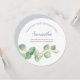Elegant watercolor botanical bridesmaid or maid of honour proposal card in a unique round format frames your details with a border of watercolor eucalyptus leaves in shades of greens. The font is set in an elegant traditional sans serif and script type. Perfect for spring, summer, fall autumn, rustic or garden theme weddings. To see more designs like this visit VG Invites at www.zazzle.com/vginvites