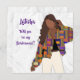 Lovely square card with a woman of colour in an African kente K45 jacket on a white marble background. Personalise your card with your friend's name and "Will you be my Bridesmaid?" is written below. - Search matching items with this kente pattern: K45