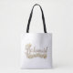 Pretty tote for your bridesmaids. Pretty white flowers highlight "Bridesmaid" Add a name to personalise.