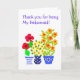 A pretty Bridesmaid Thank You Card with pots of brightly coloured flowers, from a handpainted paper collage by Judy Adamson. If you would like the front cover text changed in any way (eg a different age, person or language), please contact me through my store and I'll be happy to do it straight away.