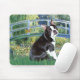 Lily Pond Bridge by Claude Monet, adapted to include a Boston Terrier With varying hues of green and blue, this serene scene is one of Monet's most popular paintings.