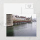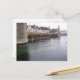 This postcard has a picture of a bridge across one of Interlocken, Switzerland's lakes.