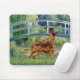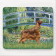 Lily Pond Bridge by Claude Monet, adapted to include an Irish Setter. With varying hues of green and blue, this serene scene is one of Monet's most popular paintings.