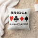 Do you view playing the game of bridge as being a battle between several minds (i.e., you and your partner versus your opponents)? Showcase your wry bridge / duplicate bridge attitude with this throw pillow featuring the four card suits along with the classic bridge saying "Bridge Is A Battlefield".