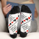 Do you view bridge as a maddening game? Showcase your wry bridge / duplicate bridge attitude with this pair of crew socks featuring the four card suits along with the saying "Bridge Is A Game Of Mystery Madness And Mayhem". Make others do a double-take with a dose of tongue-in-cheek bridge humour about what the game of bridge is all about -- from a theoretical and practical perspective!