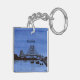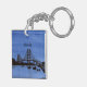 A watercolor painting of the Golden Gate Bridge in the evening adorns this customisable keychain!