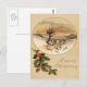 Time to celebrate the holidays. This vintage Christmas print depicts a wintry scene with a bridge and holly.