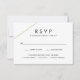 Modern geometric meal choice wedding RSVP card with a gold line across the top left over a white background. A minimalist design that still comes across as chic and stylish.