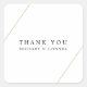 Simple and modern wedding favor stickers with two faux gold lines, one across the top left and one across the bottom right, over a white background. In the middle is the message, "Thank you" and your names. A stylish design that is great for the minimalist couple. These stickers are a great way to add a personal touch to your favors.