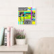 Bright abstract geometric neon pattern square wall clock