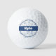 These golf balls features a fun and messy splatter design in blues and greys on a bright background in a blue circle border with a bold pale grey personalised name over a dark blue strip across the middle of the ball.