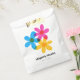 These easy to customise wedding favour bags offer a modern take on retro style with hippie daisy flowers in bright yellow, blue and magenta pink. The hand drawn graphics are designed to imitate classic risograph style printing. All of the text on these bags is ready for your custom touch with simple black printing against a clean white background.