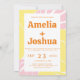 Bright and bold Retro Wedding invitation. Orange pink and yellow wedding invitation. This contemporary invitation template for you to personalise for the perfect event. Modern invitation with vintage retro font.