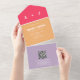 Bright and bold Retro Wedding invitation. Orange pink and purple wedding invitation. This contemporary invitation template for you to personalise for the perfect event. Modern invitation with vintage retro font.