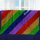 Add a sparkly touch to your home bedroom or nursery decor with this bright and shiny faux glitter rainbow striped custom fleece blanket. Blanket alternates stripes of red, yellow, green, blue, and purple glitter. Add your name and a heart for a personal touch (or remove, per your preference). This blanket is great for any kid or adult who loves fun colorful things!