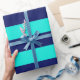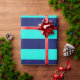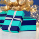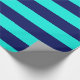 Bright Aqua, Navy Blue XL Stripes Pattern V Wrapping Paper