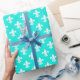 Bright Aqua White Fleur de Lis Pattern Wrapping Paper