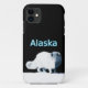 A digital painting of an Arctic Fox on a bright polar night. Text reading, "Alaska" also appears in glowing blue and white.