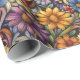 This roll of wrapping paper features a cosy, autumn-inspired floral design bursting with seasonal charm. Warm-toned flowers in rich oranges, golden yellows, and muted denim blues bloom across the surface, creating a harmonious palette that evokes crisp fall air and changing leaves.