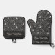 Bright Black and Winter White Birds Floral Pattern Oven Mitt & Pot Holder Set