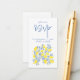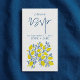 This charming RSVP card is designed to coordinate beautifully with your wedding suite, featuring a bright and cheerful combination of lemon yellow and blue. The bold and stylish “RSVP” in blue script grabs attention, while the instructions, including the couple’s names and RSVP deadline, are displayed in a clean, easy-to-read serif font. The bottom of the card is adorned with a delightful lemon branch illustration, adding a lively and refreshing feel to the design. Perfect for spring or summer weddings, this card strikes the right balance between elegant formality and vibrant playfulness.