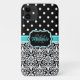 Bright Blue Monogrammed Damask Polka Dots Pattern Case-Mate iPhone Case